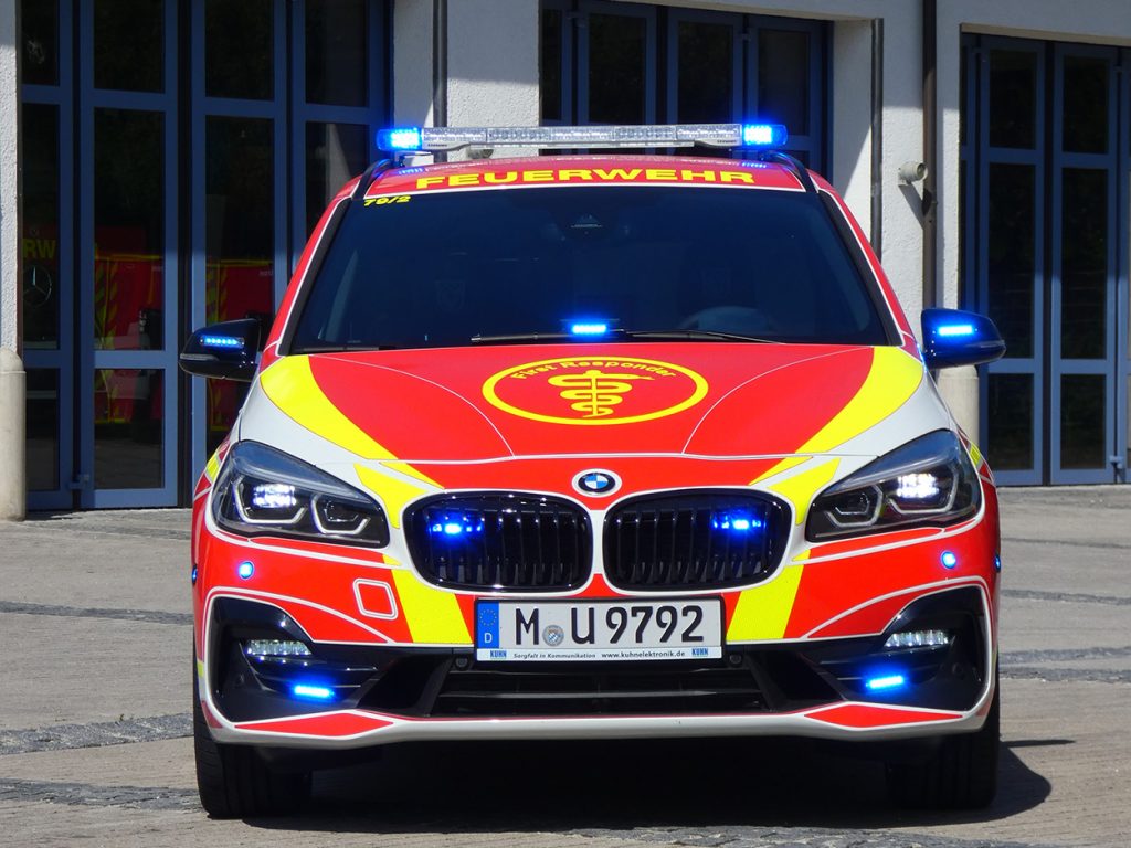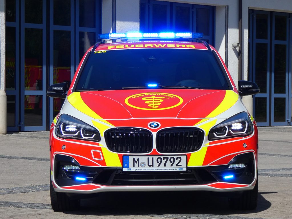 Als Basis dienen zwei BMW 2er Gran Tourer, welche nach sorgfältiger Prüfung am Besten zu den Anforderungen der  ehrenamtlichen Helfer passen. Bei der Auswahl der Sondersignalanlage war das wichtigste Kriterium die Sicherheit der Nutzer, so verwundert es auch nicht, dass eine Vielzahl an optischen und akustischen Elementen zum Einsatz gekommen sind.