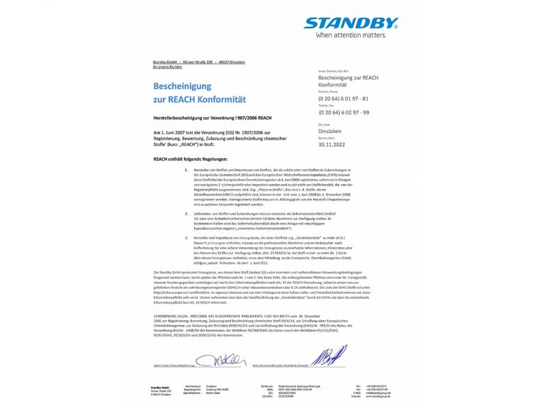 REACH Bescheinigung