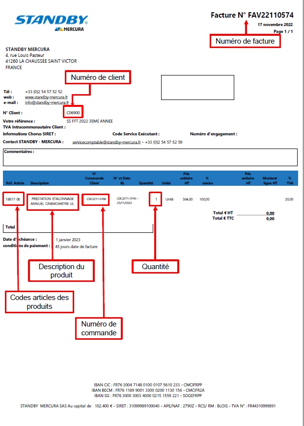 Comment retrouver une information sur ma facture STANDBY FRANCE ?