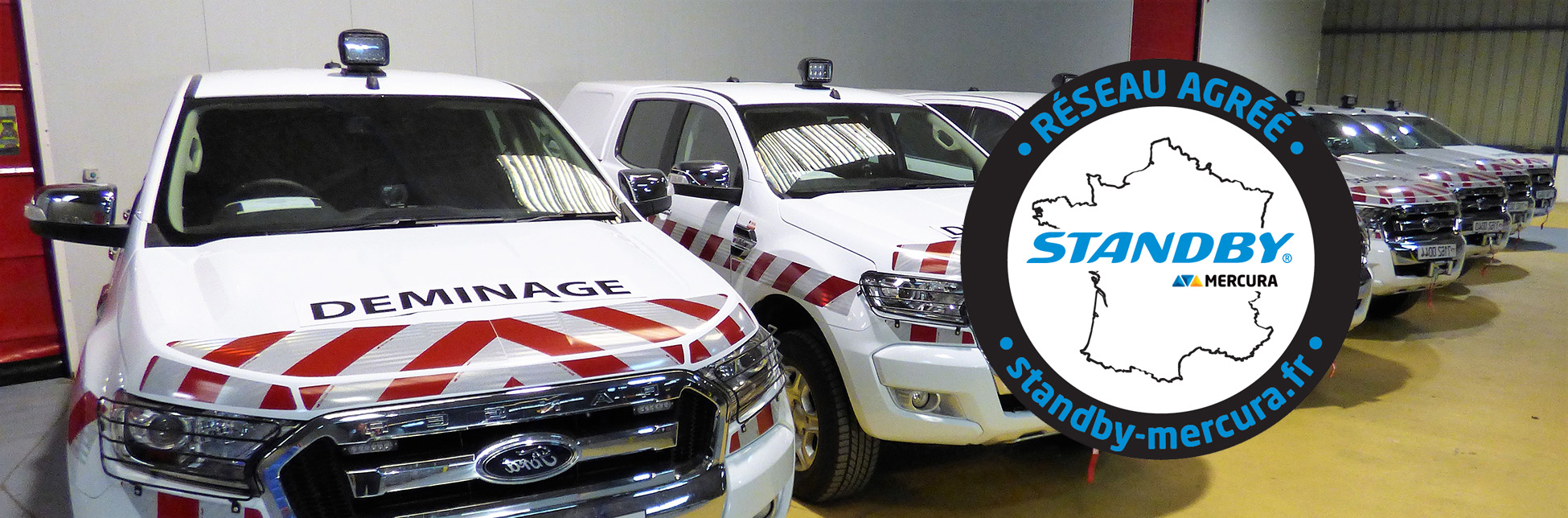 Le réseau se compose de près de 80 points services, soit plus de 100 techniciens formés aux produits Standby-Mercura dans toute la France, Corse et DROM-COM. En moyenne, vous pourrez ainsi retrouver un de nos partenaires à moins de 60 km de la plus grande ville de votre département. De plus, tous nos intervenants sont équipés de véhicules ateliers.