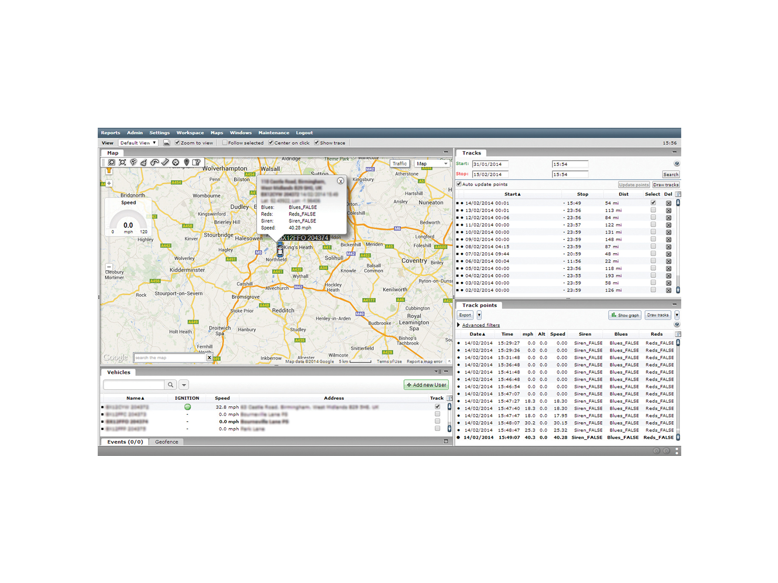 - Real time and historic tracking with speed recorded from Satellite Navigation (GPS) signal and/or vehicle CAN Bus
