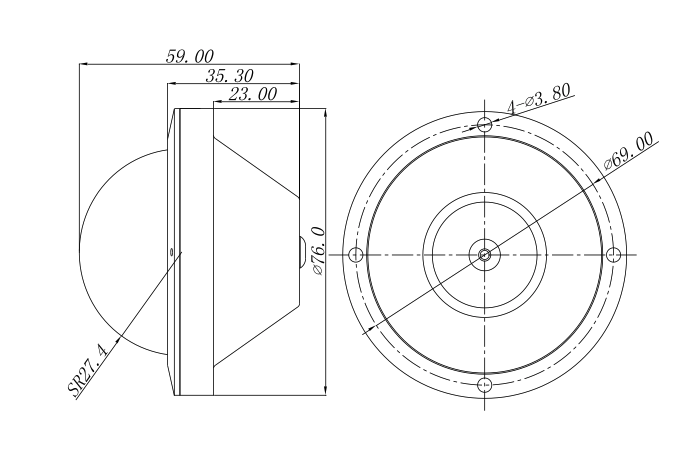 The Internal Mini Dome Camera features a 1080P output signal over analog AHD for direct compatibility with the Standby UK range of digital video recorders. There is an audio option which includes a high quality built-in microphone and analog audio output.
