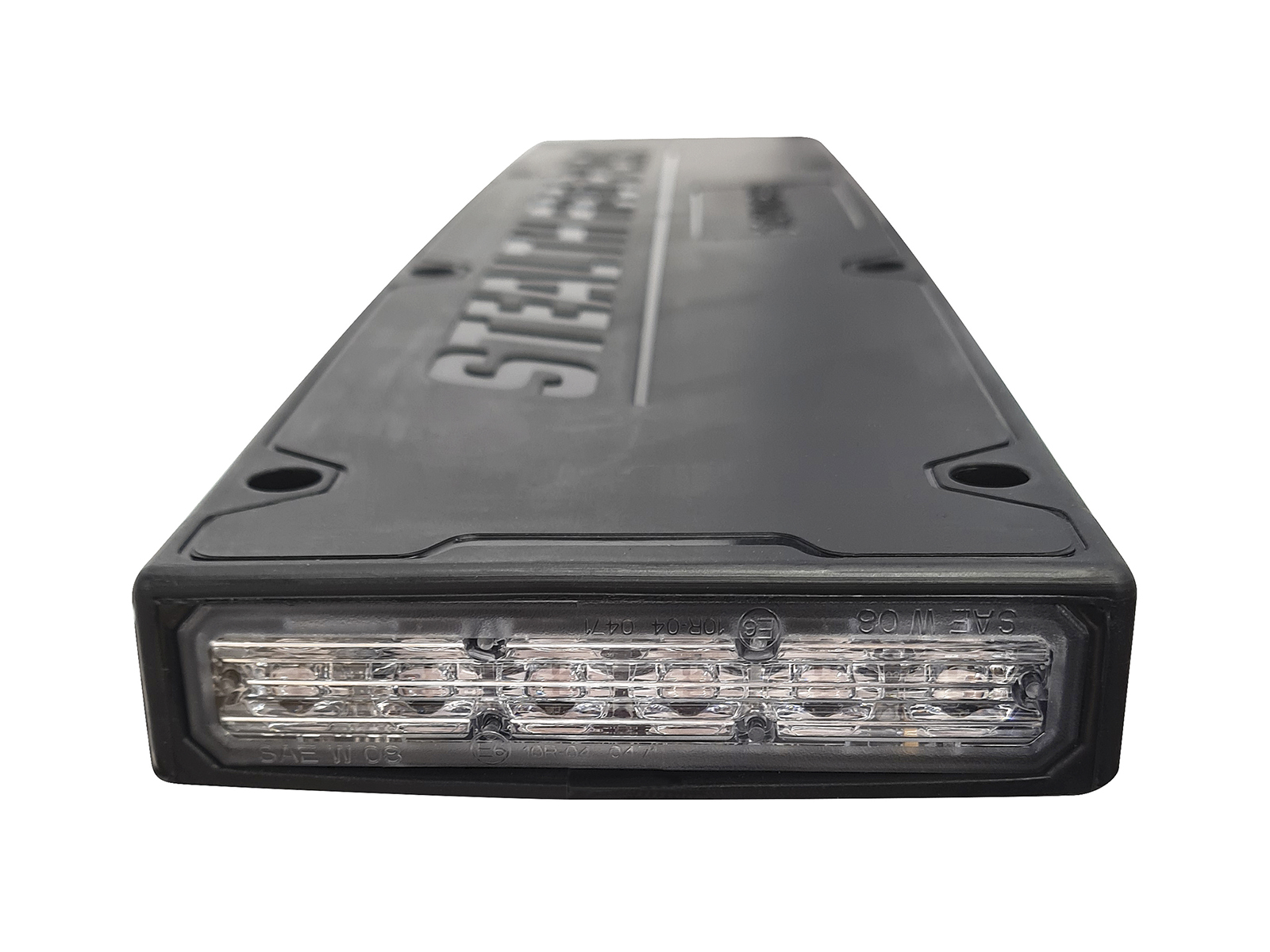 6-way high intensity LED modules are set into each end of the Stealth Reg Plate which is supplied with a Split Flash Quad flash pattern as standard, this ensures that there is always light emitting from the unit when in use, particularly useful when approaching/exiting a junction.